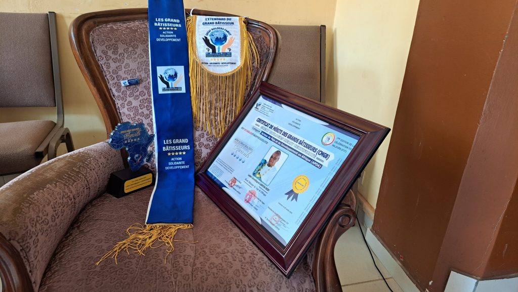 Nominé dans la catégorie « Acteur de paix et développement en Afrique », le Prince Régent du trône royal de Lolan a été honoré pour ses nombreuses actions en faveur de la paix entre les citoyens de la commune Lacs 1. La distinction comprend un macaron symbolisant son engagement en faveur de la paix ; un cache-col honorifique ; un trophée représentant l’architecture de l’Afrique ; et un certificat d’attestation de « Grand Bâtisseur » décerné par l’OMGB.