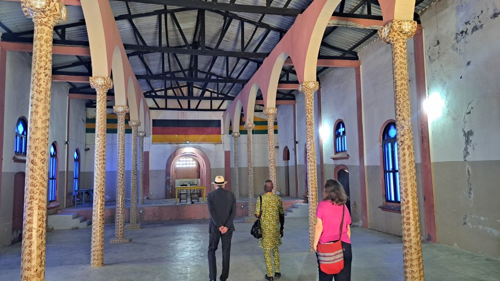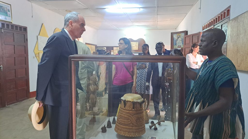 Accompagné du guide, Félix Anoumou Dossavi, Claudius Fischbach est allé sur les traces de ces vestiges allemands. Il a donc pu visiter à Zébé, le musée régional qui servait de résidence au Gouverneur allemand ainsi que le Palais des Gouverneurs qui est l’actuel bureau de la Préfecture des Lacs. Autres lieux visités à Zébé, le 1er camp militaire allemand, et le 1er hôpital psychiatrique. Le diplomate allemand a été ensuite conduit au quartier Adjido où il a visité le cimetière allemand ainsi que la première école publique gouvernementale. L’ancien bâtiment de l’Eglise catholique Saint Pierre et Paul construit par les allemands situé à la plage au quartier Djamadji Ela a été aussi présenté à Monsieur Fischbach. La dernière étape a été l’hôpital Natchigal qui fut le premier hôpital occidental dans la sous-région et qui abrite aujourd’hui l’Ecole primaire publique KUTSCHENRITTER.